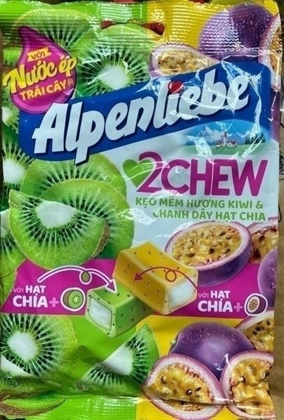 Kẹo Alpenliebe Hương Kiwi & Chanh Dây hạt chia gói 87,5g