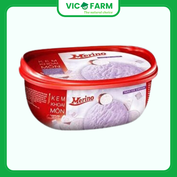 Kem lõi xốt khoai môn Merino được sản xuất từ nguồn nguyên liệu tươi ngon, đảm bảo chất lượng. Vị kem mát lạnh, mang lại sự ngon miệng, sảng khoái cho người thưởng thức.