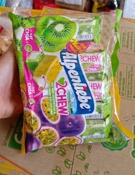 Kẹo mềm Alpenliebe Hương Kiwi & Chanh Dây hạt chia thỏi 24,5g