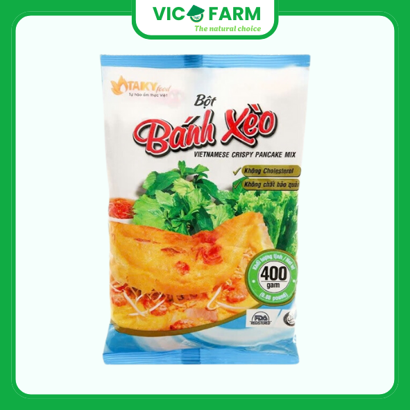 Bột bánh xèo Tài Ký gói 400g chế biến thành những chiếc bánh xèo hảo hạng, thơm ngon.