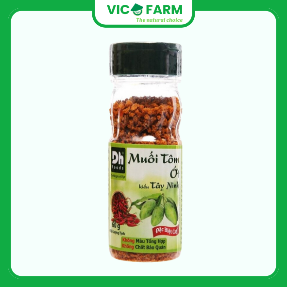 Muối tôm ớt kiểu Tây Ninh Dh Foods hũ 60g là gia vị không thể thiếu cho các món trái cây miền nhiệt đới với hạt muối to cùng hương vị đặc trưng giúp sản phẩm nổi bật so với các loại muối tinh thông thường.